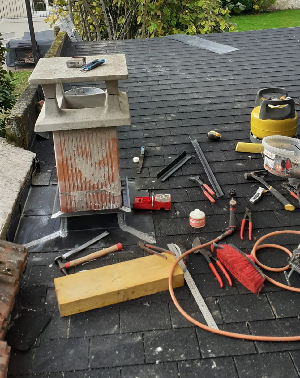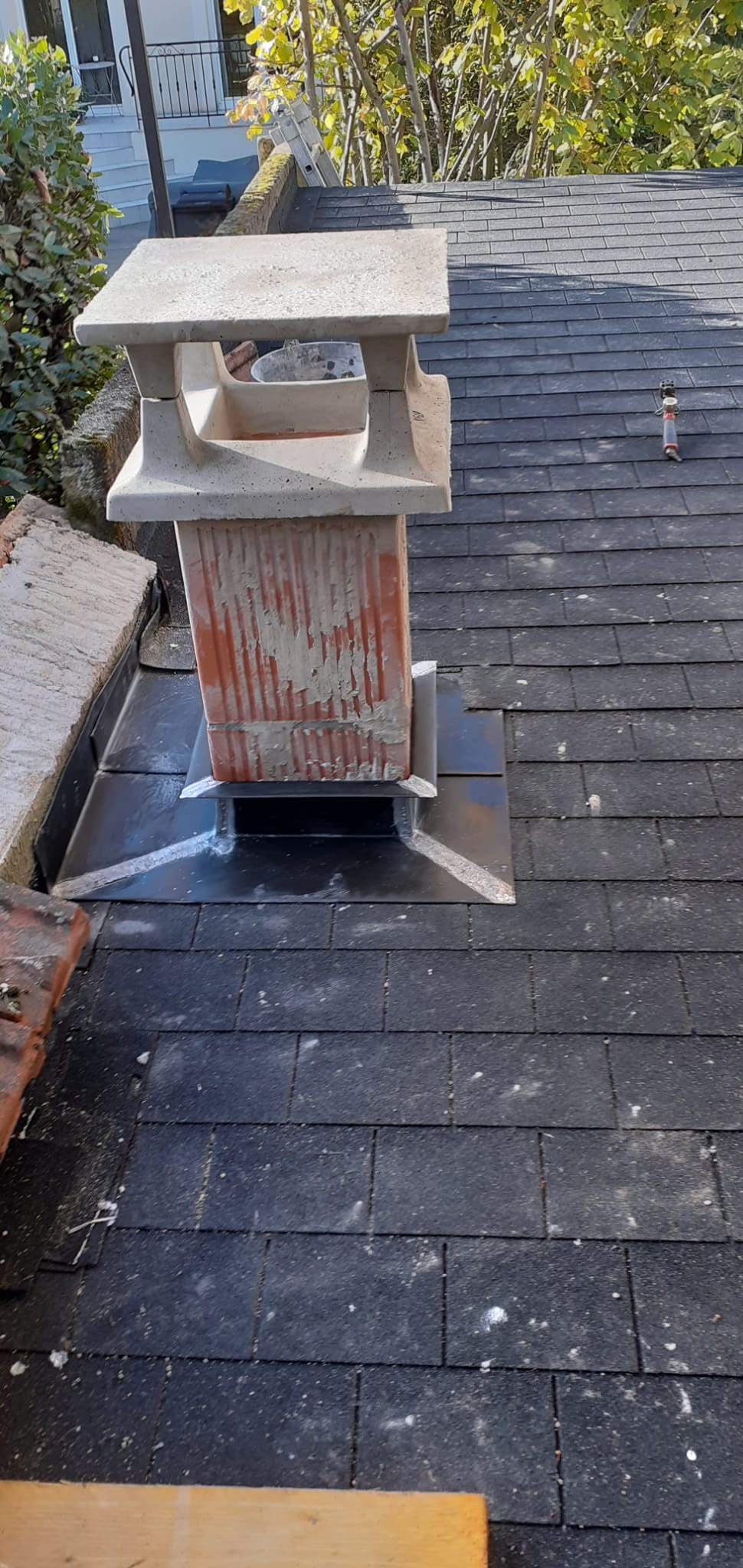 L’entreprise RABOURDIN a réalisé la pose d’une cheminée sur un toit en shingle, en respectant les normes de sécurité et d’étanchéité. Après une étude préalable de la structure et de l’emplacement idéal, l’ouverture nécessaire a été réalisée dans la toiture en shingle, en veillant à ne pas compromettre son intégrité. La cheminée a été montée avec précision, puis fixée solidement à la charpente pour garantir sa stabilité. Des raccords d’étanchéité ont été installés autour de la base de la cheminée pour éviter toute infiltration d’eau. Enfin, les finitions ont été soignées afin d’assurer une parfaite intégration de la cheminée à l’esthétique du toit. Grâce à son expertise en couverture et zinguerie, JP Rabourdin garantit une installation fiable, sécurisée et durable.